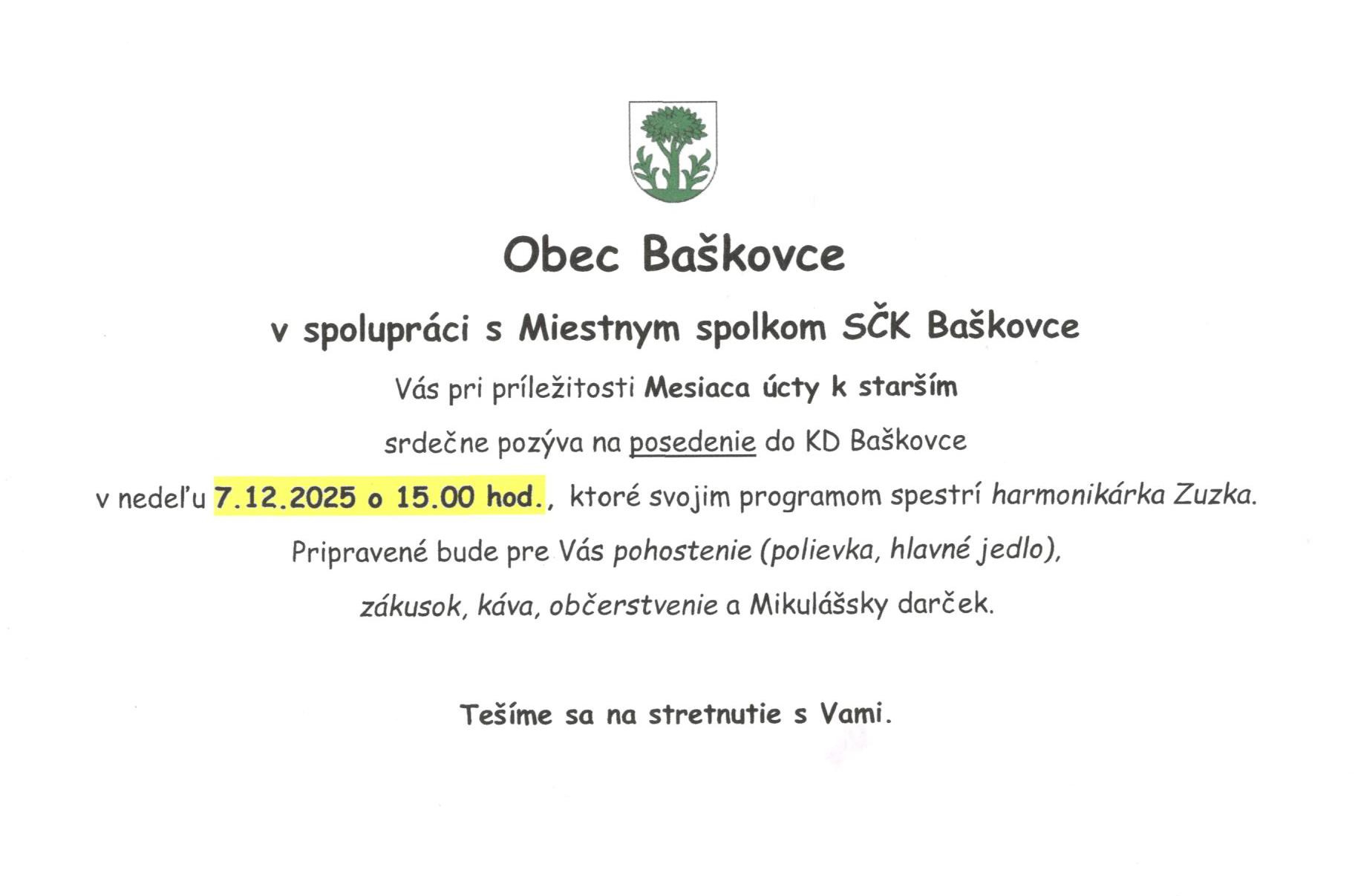 Pozvánka - Posedenie dôchodcov 7.12.2025
